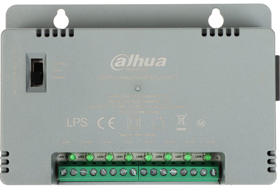 PFM344D-8CH-EN 8-wyjściowy zasilacz impulsowy w obudowie przystosowanej do montażu naściennego, umożliwia jednoczesne zasilanie kilku urządzeń3-poziomowa regulacja napięcia na każdym wyjściu umożliwia łatwe dopasowanie zasilacza do różnych typów urządzeń