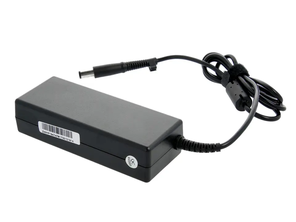 Jak dobrać odpowiedni zasilacz? : Parametry zasilania DC (direct current – prąd stały) podane są zazwyczaj pod laptopem na naklejce za napisem INPUT - napięcie V (wolty) zasilacza powinno się zgadzać z wartością podaną na laptopie - natężenie prądu A (ampery) powinno być równe lub większe od wartości podanej na laptopie, ten parametr oznacza maksymalny prąd jakim wolno obciążyć zasilacz, o wielkości obciążenia decyduje laptop - moc W (waty) to wynik przemnożenia napięcia i prądu - kształt i wielkość wtyku – prosimy porównać ze zdjęciem oferowanego przedmiotu oraz z wymiarami wtyku podanymi w opisie; możemy również ustalić na podstawie bazy danych producenta zasilaczy