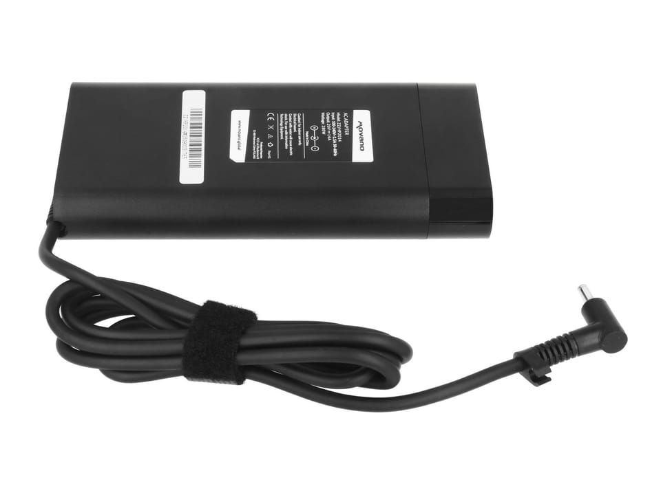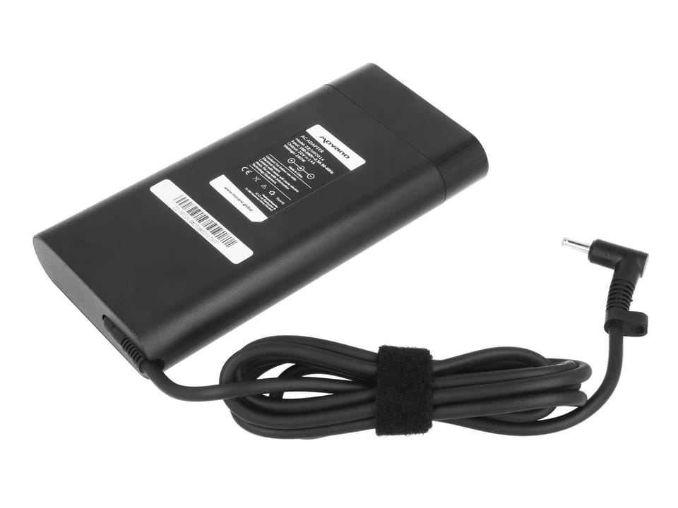 Jak dobrać odpowiedni zasilacz? : Parametry zasilania DC (direct current – prąd stały) podane są zazwyczaj pod laptopem na naklejce za napisem INPUT - napięcie V (wolty) zasilacza powinno się zgadzać z wartością podaną na laptopie - natężenie prądu A (ampery) powinno być równe lub większe od wartości podanej na laptopie, ten parametr oznacza maksymalny prąd jakim wolno obciążyć zasilacz, o wielkości obciążenia decyduje laptop - moc W (waty) to wynik przemnożenia napięcia i prądu - kształt i wielkość wtyku – prosimy porównać ze zdjęciem oferowanego przedmiotu oraz z wymiarami wtyku podanymi w opisie; możemy również ustalić na podstawie bazy danych producenta zasilaczy
