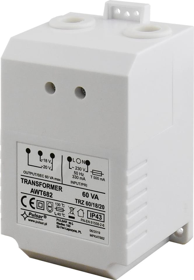 Zasilacz AWT-682 przeznaczony jest do urządzeń wymagających napięcia AC: 18V, 20VMoc odbiorników dołączonych do zacisków zasilacza nie może przekroczyć jego mocy znamionowej