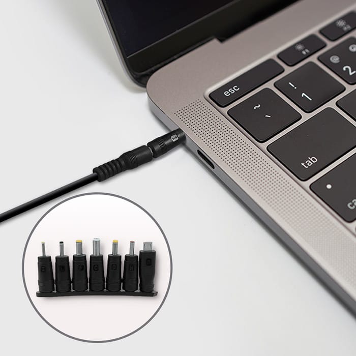 Nowoczesny, o wysokiej sprawności, uniwersalny zasilacz sieciowy Qoltec do laptopów. Idealnie sprawdzi się w domu oraz w pracy, jako zasilacz główny lub zapasowy. Wyposażony w zaawansowane technologie (zabezpieczenia) przeciwprzepięciowe, przeciw przeciążeniowe przeciwzwarciowe i termiczne, jest bezpieczny w użytkowaniu. Cechuje się niskim zużyciem energii i wysoką wydajnością. W zestawie kabel zasilający, rzep którym można regulować długość kabla zasilacza Qoltec oraz 7 modeli wtyczek, dzięki którym można go dopasować do kilku urządzeń.