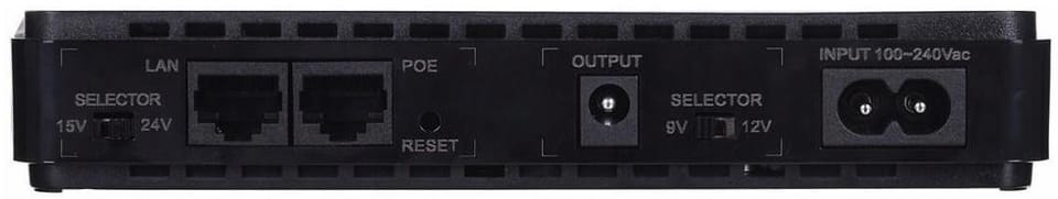 Zasilacz UPS posiada wbudowany interfejs PoE 15V/24V zapewniający transmisję danych oraz zasilanie za pomocą jednego złącza RJ-45