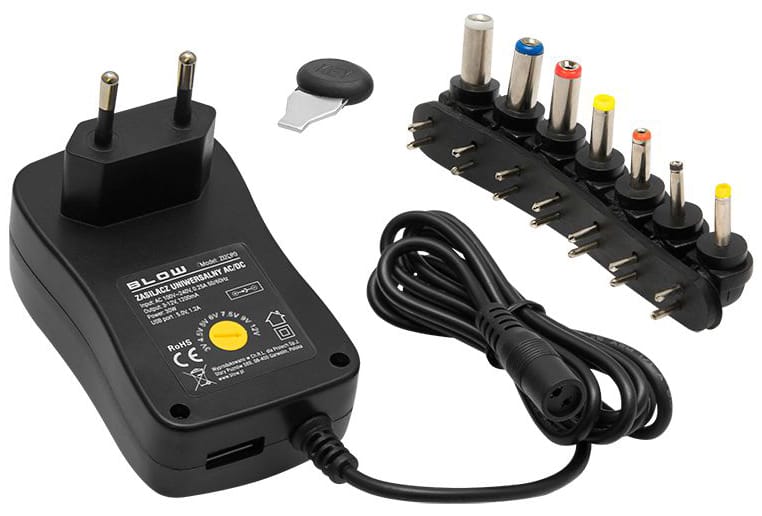 7 wymiennych końcówek ( 2.5*0.7mm, 3.5*1.3mm, 4.0*1.7mm, 3.0*1.0mm, 5.0*1.7mm, 5.5*2.1mm, 5.5*2.5mm)
