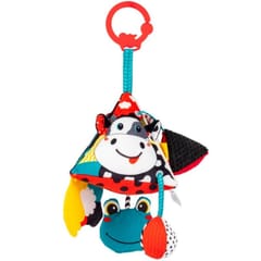 Zawieszka Kontrastowa Piramidka Krowa Razem z wesołymi zwierzakami odkryj radość z sensorycznej zabawy! Na kontrastowej piramidce ukryło się wiele niespodzianek, a wśród nich bezpieczne lusterko do samopoznania malucha, piszczałka, tasiemki do przeciągania z materiałowymi zabaweczkami oraz gryzak w kształcie żółciutkiej kiści bananów, który z pewnością przyda się każdemu ząbkującymi bobasowi. Zastosowane w piramidce materiały różnią się zarówno fakturą, jak i wzorem czy kolorem, dzięki czemu podczas zabawy, będzie ona stymulować zmysły malucha i pomagać mu w rozwijaniu zdolności poznawczych. Praktyczna zawieszka, w którą wyposażona została zabawka, pozwoli zawiesić ją w wybranym miejscu. Cechy produktu: - sznurki do przeciągania; - bezpieczne lusterko; - doczepiony gryzaczek; - doczepiona piszczałka; - szeleszczące elementy; - dzwoneczek Wiek: 0m+