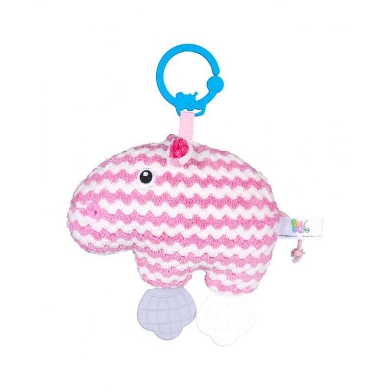 Zawieszka Hipcio Stylowy Hipcio to niezastąpiony kompan do zabawy! Wykonany został z materiału o fakturowanej powierzchni, który stymuluje zmysł dotyku dziecka, rozwijając jego zdolności poznawcze. Zwierzaka zdobią gryzaczki, a w jego brzuszku kryje się dzwoneczek, dzięki czemu Hipcio wesoło dzwoni przy potrząsaniu. Praktyczny uchwyt, pozwala przymocować zawieszkę w wybranym miejscu, aby wszędzie mogła towarzyszyć maluchowi. Cechy produktu: - fakturowany materiał - pastelowe kolory - 2 gryzaczki - dzwoneczek - uchwyt do przymocowania w wybranym miejscu Wymiary: 22x9x16 cm Wiek: 0+