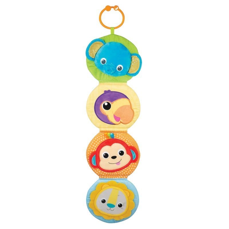 Pluszowa zawiesza jest bezpieczna dla dziecka. Można ją przyczepić do łóżeczka, wyraźne kolory i bogate wzornictwo zachęcą dziecko do zabaw. Aktywna zabawa wspiera rozwój dziecka. Zabawka z jednej strony ma nadruk zwierząt i wysokiego drzewa, które ciągnie się wzdłuż całej zawieszki. Druga strona zawieszki jest bogata w różne tekstury materiałów, na jednej z nich jest bezpieczne plastikowe lusterko. Na każdej stronie książeczki znajdziemy inną postać, która kojarzy się z dzikim safari. Książeczka ma również piszczałkę. Wymiary po rozłożeniu: 67 x 16,5 cm Specyfikacja: • 000247 • Wiek: 0m+