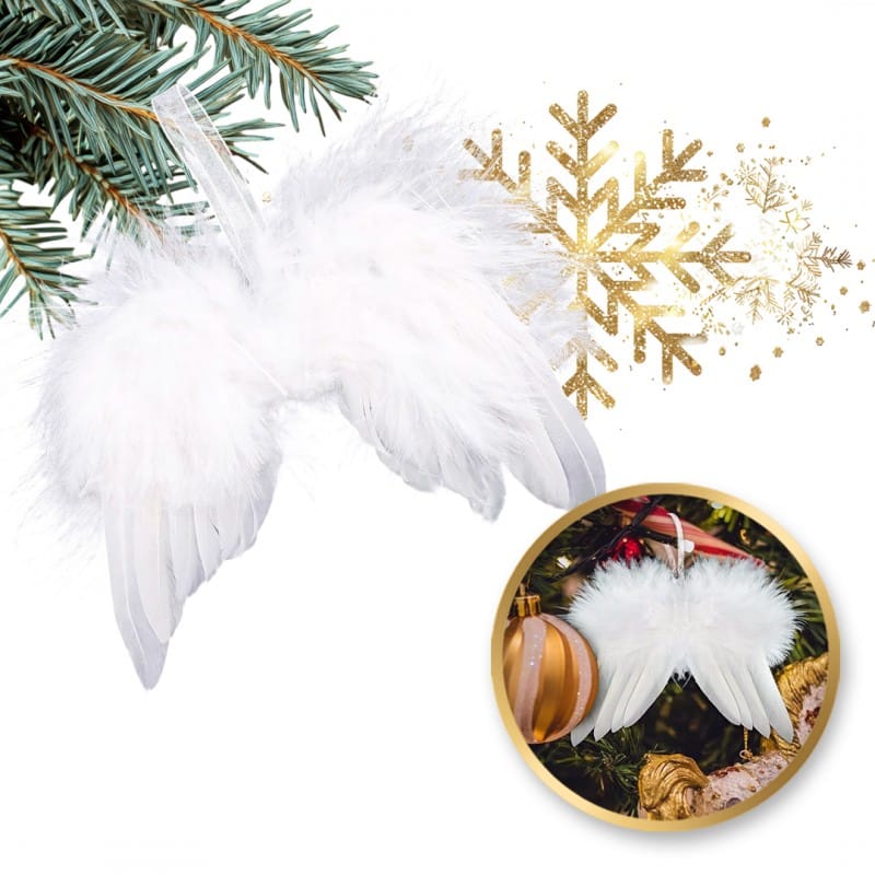 Wisząca ozdoba choinkowa 1 sztukaSkrzydełka z zawieszką - można zawiesić je na choince Poczuj świąteczny klimat! Dodaj swojemu wnętrzu odrobinę zimowej magii.Zawieszki nadają się jako ozdoba świąteczna do powieszenia na oknie, choince lub jako prezent, a nawet do dekoracji stroików! Wymiary:Wysokość figurki : 14 cm Szerokość 16 cmDługość sznurka: 8 cm Materiał: plastik, piórka Waga: 8g netto / 9g bruttoPoczuj magię świąt!