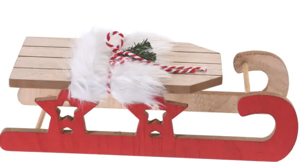 Zawieszka bożonarodzeniowa sanie kolor naturalny 30x12x8 cm Ozdobna drewniana zawieszka w kształcie sań w prosty i szybki sposób pomoże udekorować każde wnętrze Twojego domu. Pięknie będzie wyglądać zarówno w salonie, pokoju gościnnym jak i pokoju Twojego dziecka. Specyfikacja: materiał: drewno, kolor: naturalny, czerwony , wymiary: 30x12x8 cm.