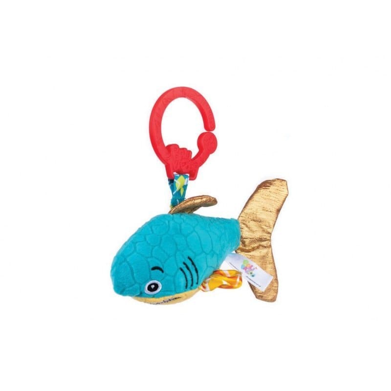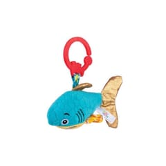 Zawieszka Rekin Ten koleżka tylko z pozoru wydaje się groźny! W rzeczywistości jest to łagodna rybka, która zabawnie popiskuje przy podrzucaniu. Rekin posiada złoty, szeleszczący ogon i wykonany jest z materiałów o zróżnicowanej fakturze, aby stymulować rozwój zmysłu dotyku maluszka. Praktyczna klamra ułatwi przymocowanie zabawki w wybranym miejscu. Zabawka przeznaczona dla dzieci od dnia narodzin. Cechy zabawki: - praktyczna zawieszka - szeleszczący ogon - zróżnicowana faktura materiałów - zabawnie piszczy przy potrząsaniu Wymiary: 19x8x12 cm Wiek: 0+