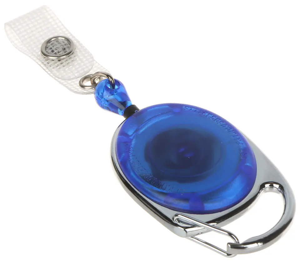 Zawieszka do identyfikatora z tasiemką z folii i zatrzaskiemZapięcie typu karabinkowego umożliwia pewne i bezpieczne umocowanie zawieszki do smyczy lub odzieżyWysuwana linka ułatwia zbliżenie karty do czytnika bez konieczności odpinania jej od ubrania