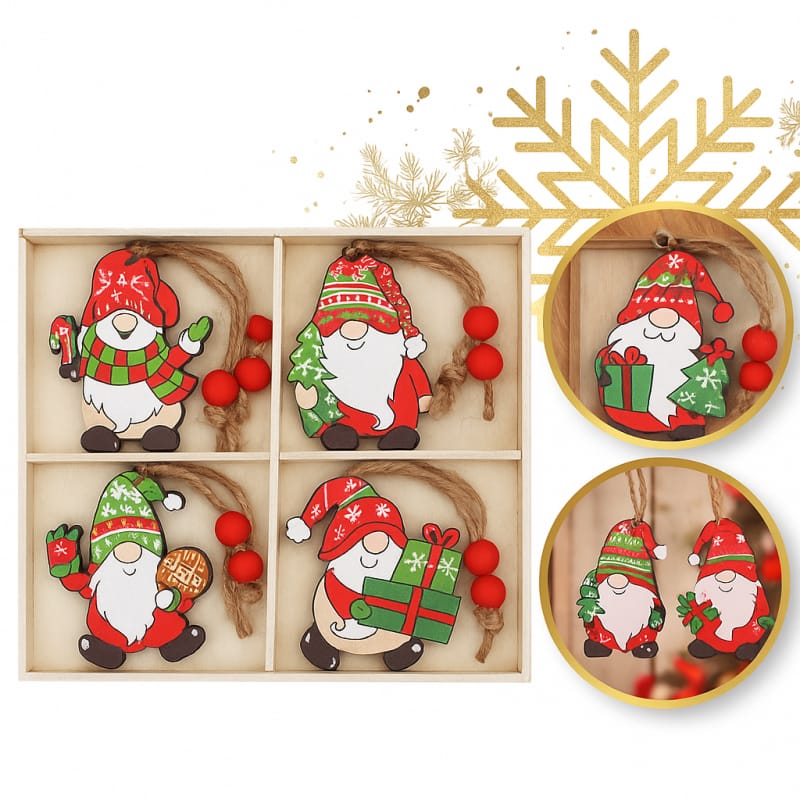 Zawieszki choinkowe KRASNALE drewniane 12szt w opakowaniu BSN77