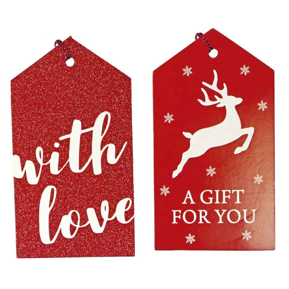 Zawieszki prezentowe Boże Narodzenie 20szt. 60X110mm tonacja czerwona 4 wzory 414526 TITANUM