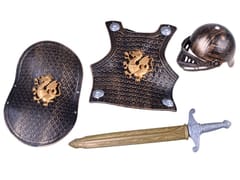 Nowy, rewelacyjny zestaw dla młodego rycerza, który idealnie nada się do zabawy jak i na bal przebierańców. Prawie każdy chłopiec uwielbia się bawić w rycerzy, wojowników, żołnierzy itp. Mam okazję zaoferować Państwu niesamowity zestaw dla małego gladiatora. Realistyczny zestaw zachwyci niejednego rycerza, idealnie nada się do zabawy jak i na bal przebierańców.