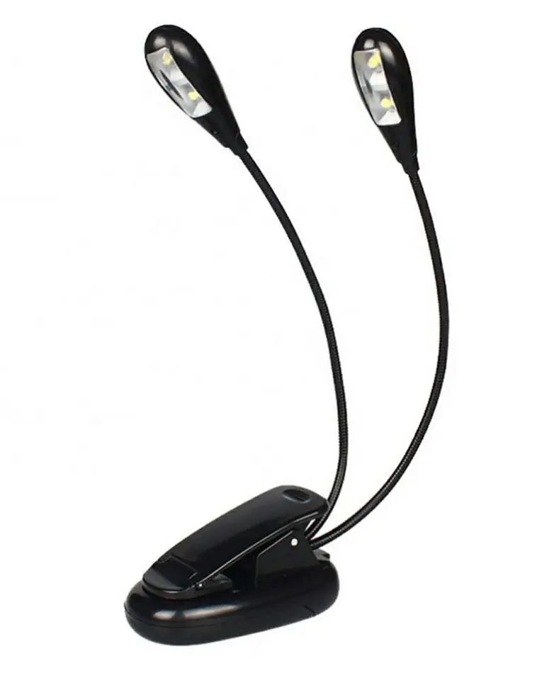 Bezprzewodowa lampka diodowa z klipsem! Doskonale nadaje się do oświetlania stron czytanych książek oraz do pracy przy laptopie. Wyposażona została w 4 jasne diody LED, z możliwością regulacji natężenia światła! Wygodny klips oraz giętka konstrukcja umożliwia precyzyjne ustawienie lampek i zamocowanie ich pod kątem swoich potrzeb. Standardowe zasilanie z portu USB komputera można w razie potrzeby zastąpić 3 bateriami AA, co umożliwi użytkowanie lampki np. pod namiotem!