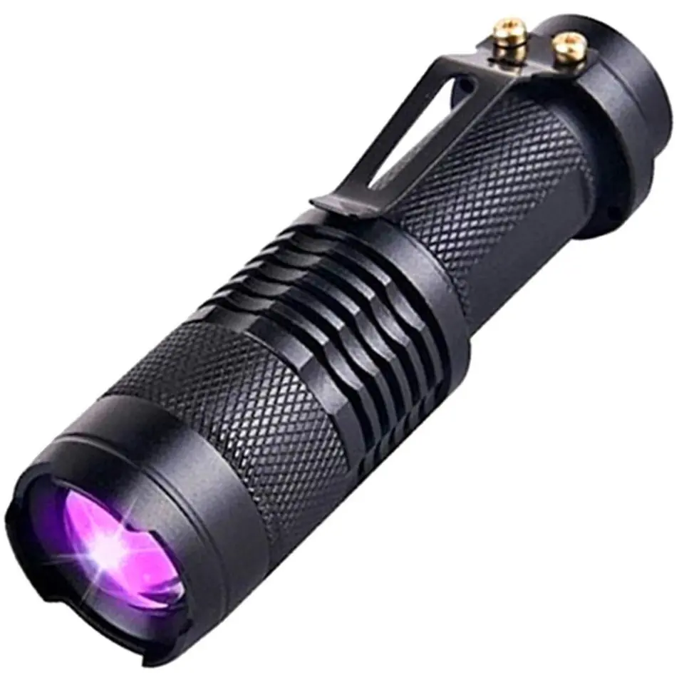 - Latarka taktyczna posiadająca bardzo mocne źródło światła - diodę UV o długości fali 395 nm.
