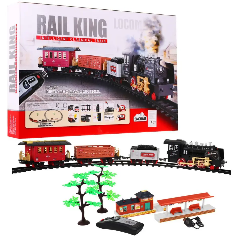 Zdalnie sterowana Kolejka z torami dla dzieci 3+ Funkcja dymu + Dźwięki Światła