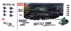 | Czołg posiada częstotliwość 2.4 GHz, dzięki czemu w tym samym czasie możliwe jest kierowanie pojazdami przez wielu graczy. Czołg wyposażony we wspaniałe efekty dźwiękowe i świetlne. Zasilany jest akumulatorkiem wielokrotnego ładowania. Akumulator i ładowarka do czołgu jest dołączona do zestawu. Kupując czołgi w różnych kolorach możemy przeprowadzić wspaniałą walkę, m.in. Wielką Bitwę Czołgów, która wciągnie każdego, bez względu na wiek. Obrotowa wieżyczka wyposażona jest w lufę z systemem podczerwieni. Po wycelowaniu i oddaniu celnego strzału w kierunku drugiego pojazdu usłyszymy realistyczny dźwięk trafionego celu. Na potwierdzenie trafienia zgaśnie jedna z czterech kontrolek na wrogim czołgu. Po czterokrotnym trafieniu pojazd wroga zostanie unieruchomiony na 15 sekund ! Bitwa została wygrana i można zacząć nową rozgrywkę od początku. Gąsienicowy układ jezdny doskonale imituje jazdę prawdziwego czołgu. Instynktowne sterowanie czołgiem nie sprawia żadnych trudności i jest łatwe w opanowaniu już po kilku próbach. Pojazd poradzi sobie z pokonywaniem przeszkód aż do 3 cm wysokości. Realistyczny odrzut pojazdu podczas wystrzału - pojazd podczas wystrzału z działa zachowuje się jak prawdziwy czołg na polu bitwy. Posiada otwierany właz na wieżyczce, w którym możemy umieścić czołgistę wraz karabinem maszynowym. Sterowanie - pojazdem możemy kierować do przodu, do tyłu, skręcać w prawo i w lewo, a także obracać w miejscu tak jak prawdziwym czołgiem. - zasięg do ok. 40 metrów, - czas ładowania ok. 4 godziny, - maksymalna prędkość poruszania do ok. 6 km/h, - czołg może obracać się o 360 stopni, dodatkowo wieżyczka sterowana z pilota obraca się maksymalnie o 320 stopni. - lufa, która umieszczona jest w górnej części czołgu, porusza się w górę i w dół. Efekty dźwiękowe: - odgłos pracy silnika, - odgłos wystrzału z działa. Efekty świetlne: - świecące przednie reflektory na pojeździe, - elektroniczny wskaźnik mocy z tyłu pojazdu. | |