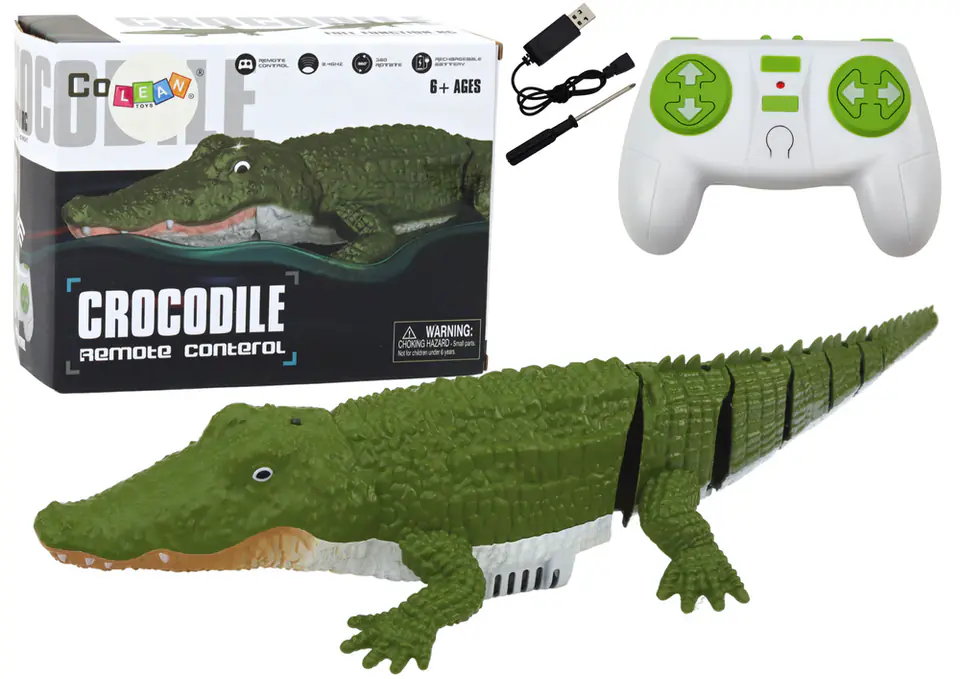 Do sterowania krokodylem służy dołączony pilot, który umożliwia użytkownikowi płynną kontrolę nad ruchami. Dzięki temu krokodyl może poruszać się zarówno w prawo, jak i w lewo, zapewniając pełną swobodę w eksploracji wodnych przestrzeni.