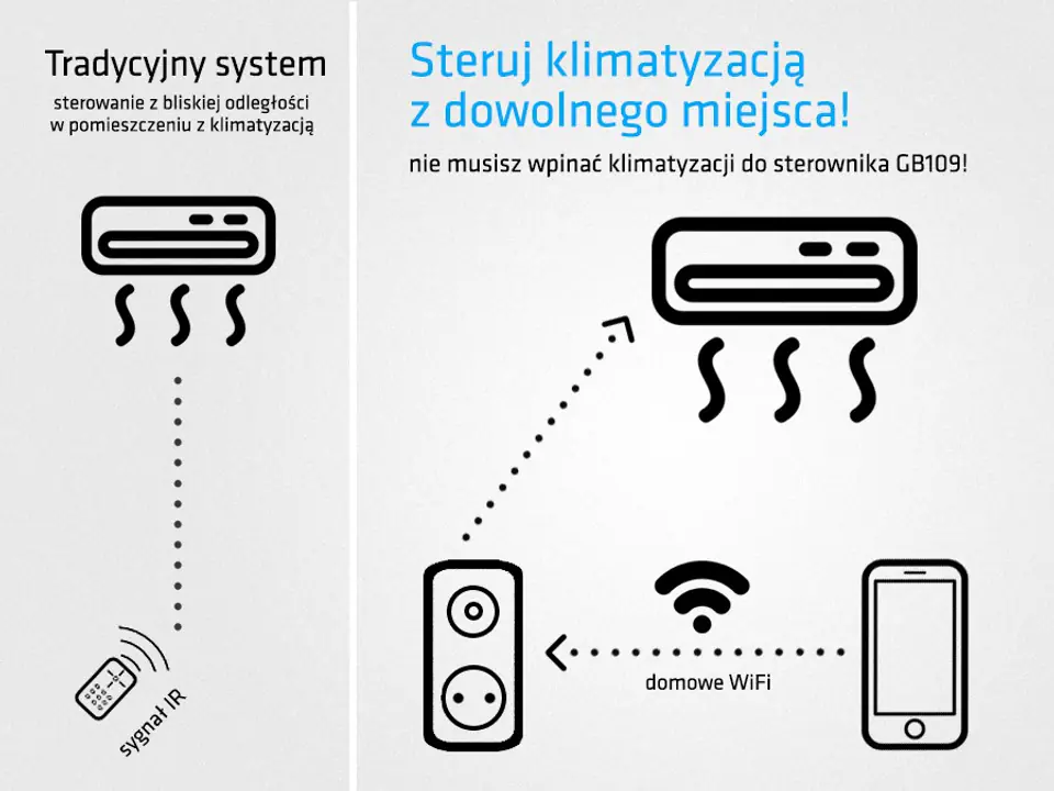 Zdalny sterownik wi-fi Android iOS do klimatyzacji GreenBlue GB109, max 3680W
