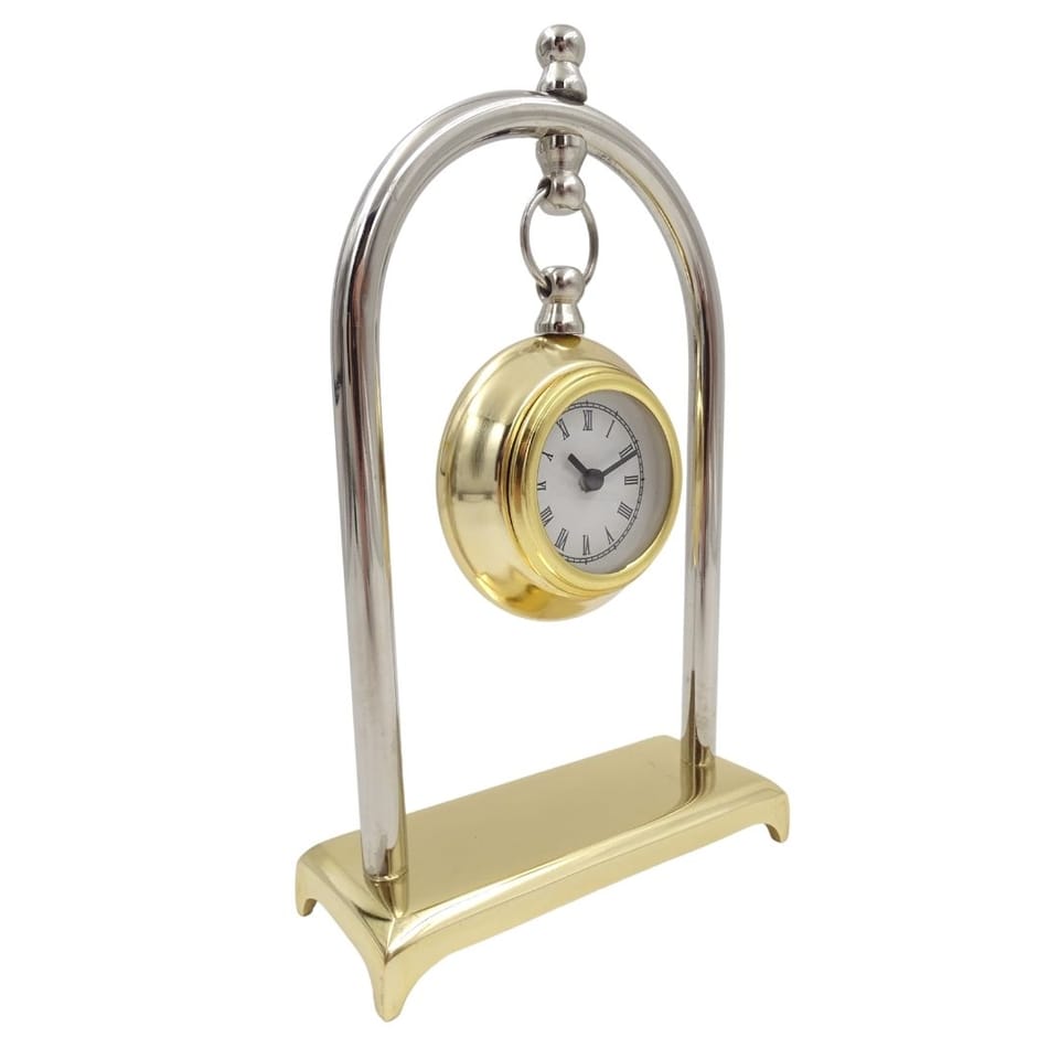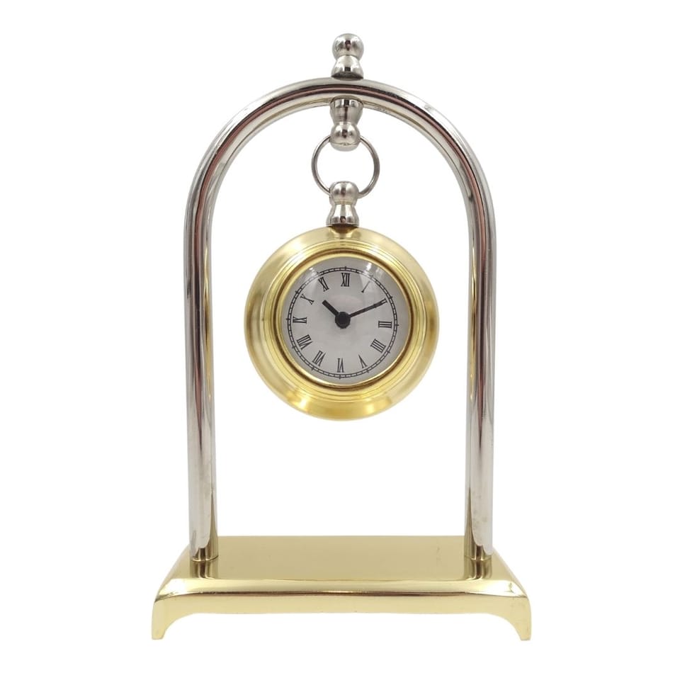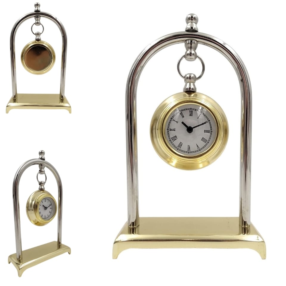 Zegar kominkowy vintage retro – dekoracyjny zegar na biurko - M02 Dodaj wnętrzu elegancji z zegarem kominkowym w stylu vintage M02. Ten stylowy zegar dekoracyjny retro doskonale sprawdzi się jako ozdoba na komodzie, półce nad kominkiem czy biurku – zarówno w domowym gabinecie, jak i w salonie urządzonym w stylu angielskim lub klasycznym. Obudowa wykonana z metalu oraz szklana tarcza zapewniają trwałość i wyjątkowy wygląd. Biała tarcza z czarnymi rzymskimi cyframi i wskazówkami tworzy wyraźny kontrast, który ułatwia szybkie i komfortowe odczytanie godziny. ?? Specyfikacja produktu: ·Styl: vintage, retro, angielski ·Zastosowanie: zegar na komodę, zegar na półkę, zegar do gabinetu ·Materiał: metal, szkło ·Tarcza: biała ·Cyfry: rzymskie, czarne ·Wskazówki: czarne ·Kolor obudowy: złoty, srebrny (w zależności od wariantu) ·Zasilanie: 1x bateria (brak w zestawie) ·Wymiary: 23 x 13,5 x 5,5 cm