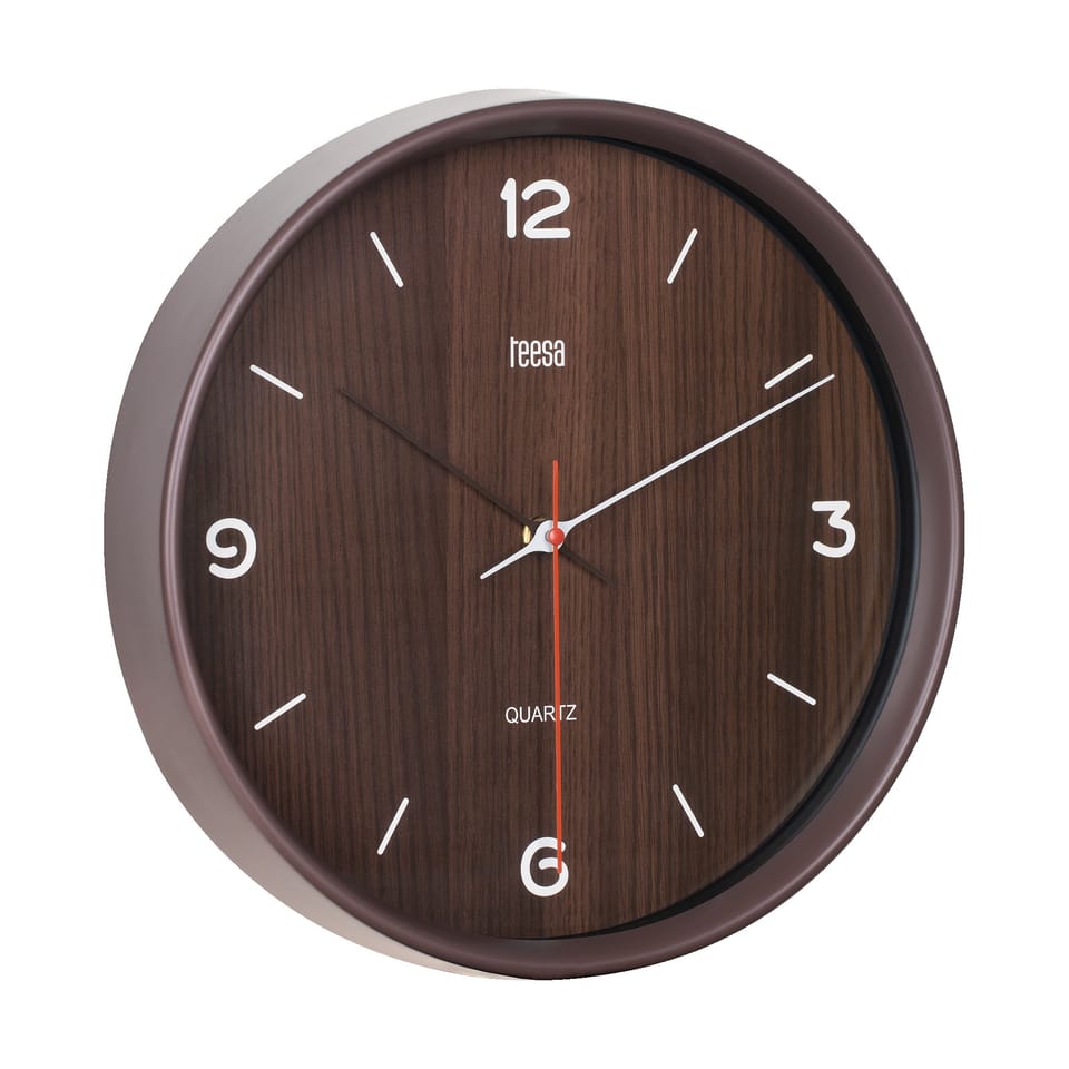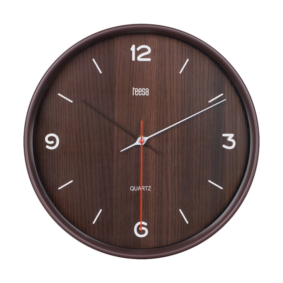 ----------GŁÓWNE CECHY----------Mechanizm kwarcowy z analogowym wyświetlaniem czasuCiemna tarcza z cyframi arabskimiPłynny ruch sekundnikaOtwór do zawieszenia na ścianie----------DANE TECHNICZNE----------Materiał: plastik, szkłoGłębokość: 4 cmŚrednica: 30 cmWaga: 592 gZasilanie: 1x bateria AA (brak w zestawie)