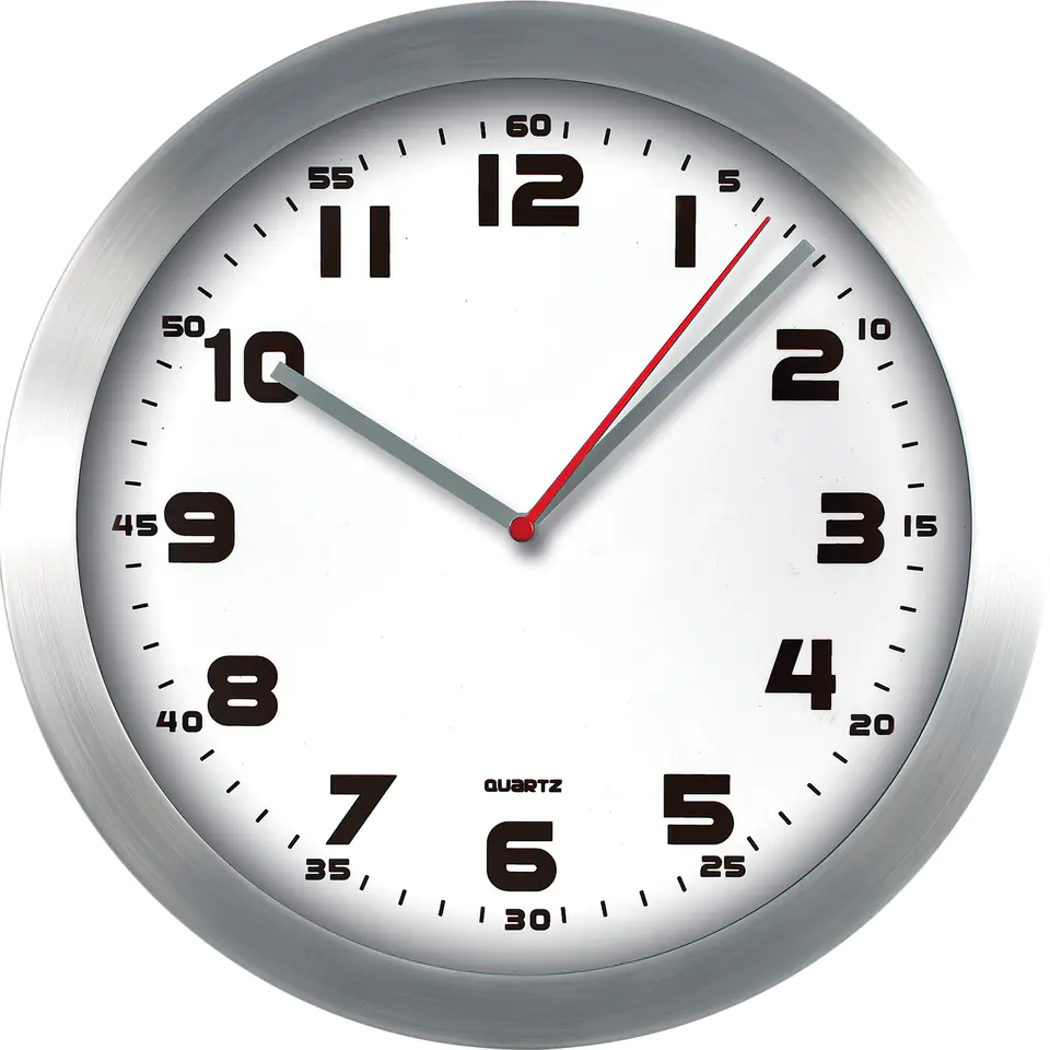 Zegar ścienny aluminiowy, 29,5cm srebrny z białą tarczą E01.2482 MPM