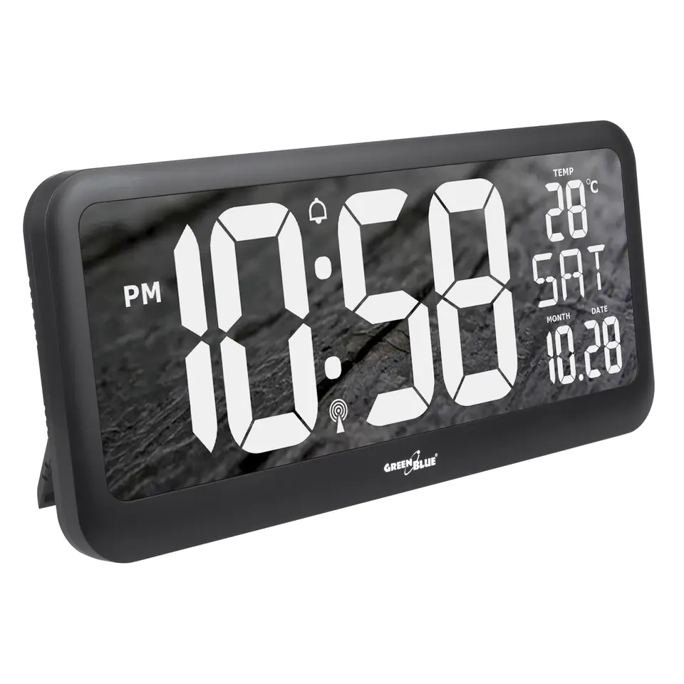 Zegar ścienny LCD bardzo duży GreenBlue, temperatura, data, GB214