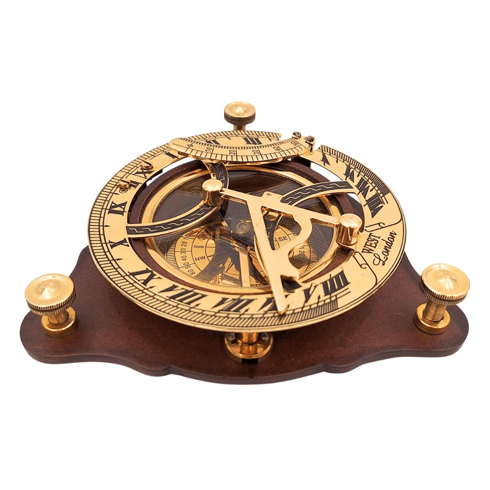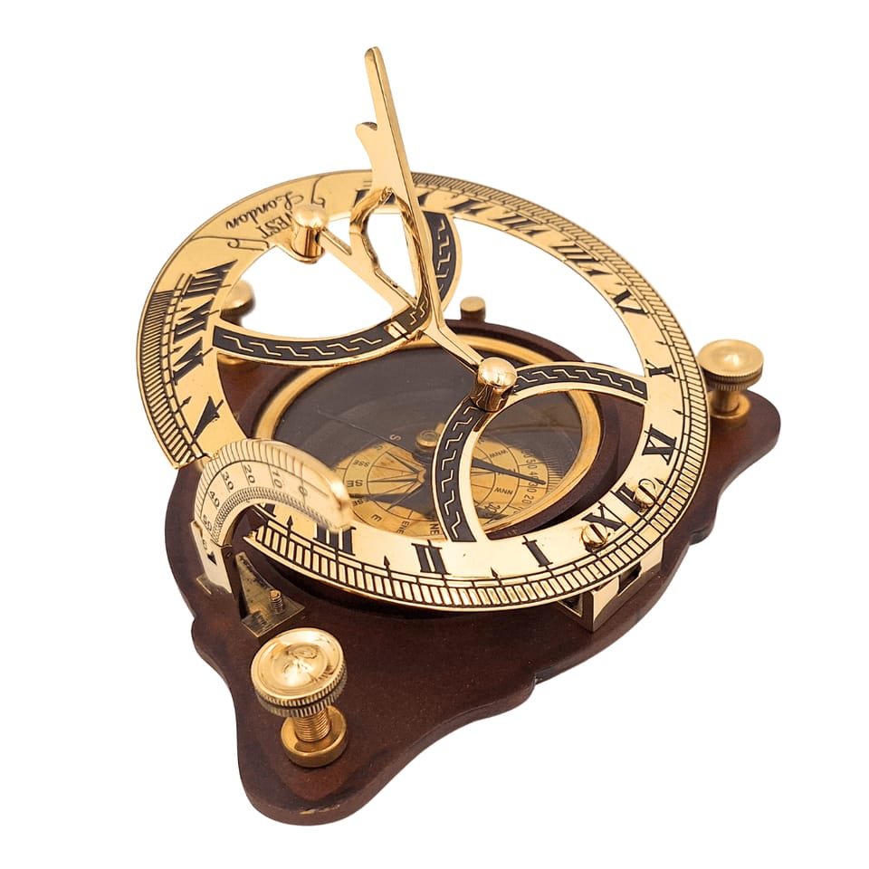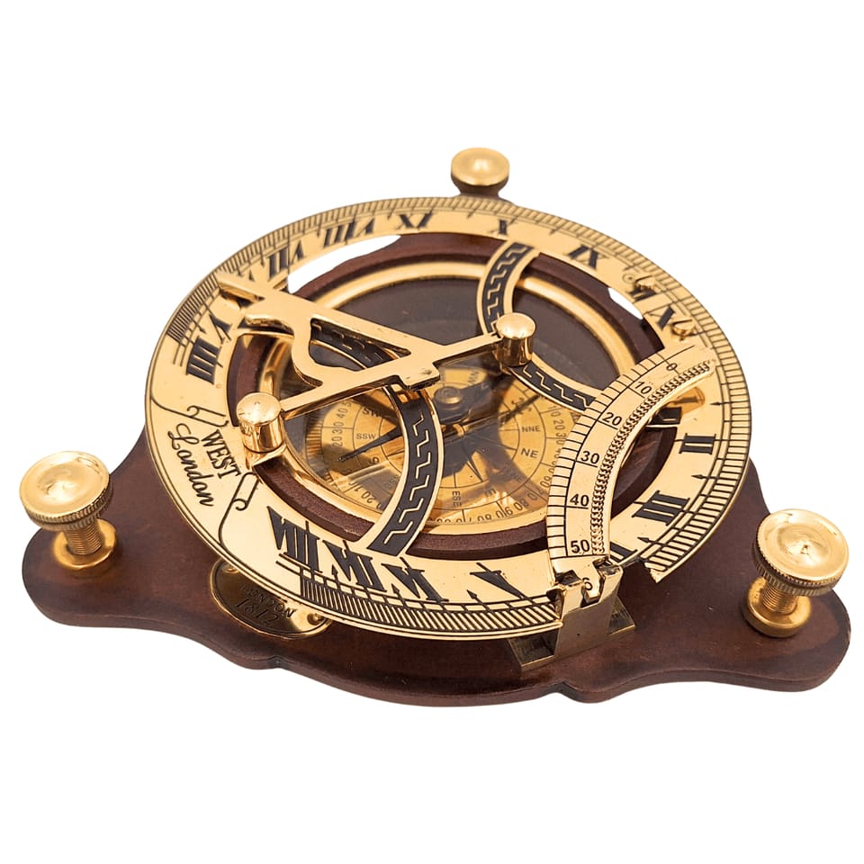 Zegar słoneczny z kompasem na drewnianej podstawie C064