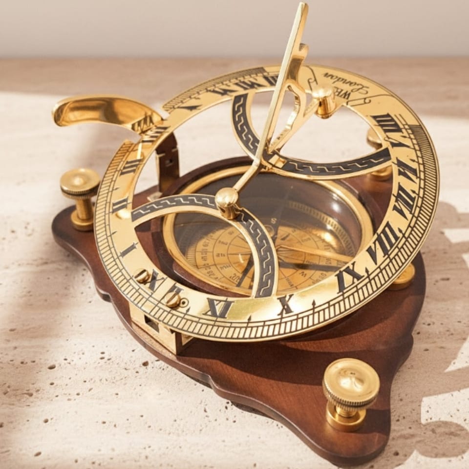 Elegancki Kompas Mosiężny z Zegarem Słonecznym na Drewnianej Podstawie – C064 Wyjątkowe i eleganckie połączenie funkcjonalnego kompasu oraz klasycznego zegara słonecznego. Osadzony na profilowanej, drewnianej podstawie, stanowi wyrafinowany element dekoracyjny, który doskonale sprawdzi się w gabinecie, biurze czy salonie w stylu klasycznym i marynistycznym. DLACZEGO WARTO ·Dwa w Jednym: Kompas do nawigacji oraz zegar słoneczny do mierzenia czasu. ·Eleganckie Materiały: Połączenie błyszczącego mosiądzu z naturalnym drewnem (podstawa) nadaje produktowi luksusowy charakter. ·Wysoka Estetyka: Wykonanie z dbałością o szczegóły, z wyraźnie oznaczonymi pierścieniami godzinowymi, czyni go stylowym dodatkiem do wnętrza. ·Idealny Prezent: Doskonały dla miłośników żeglarstwa, podróży, historycznych przyrządów oraz osób ceniących eleganckie dekoracje gabinetowe. INFORMACJE O PRODUKCIE ·Materiał: Mosiądz (instrumenty), Drewno (podstawa) ·Wymiary podstawy: 14,5 x 14,5 cm ·Średnica kompasu: 11 cm ·Styl: Klasyczny, Marynistyczny, Retro ·Funkcje: Kompas, Zegar Słoneczny ·Cechy szczegółowe: Mosiężny pierścień z cyframi rzymskimi, elegancka drewniana podstawa, idealny do dekoracji. IDEALNY PREZENT DLA: ·Miłośnika Żeglarstwa i Morskich Tradycji – to eleganckie połączenie kompasu i zegara słonecznego jest silnym nawiązaniem do historycznej nawigacji. ·Podróżnika i Odkrywcy – symbolizuje kierunek i pomiar czasu, idealnie pasując do pasji poznawania świata. ·Osoby ceniącej Eleganckie Dekoracje Gabinetowe – wyrafinowane połączenie błyszczącego mosiądzu i naturalnego drewna nadaje luksusowy charakter biuru, gabinetowi lub bibliotece. ·Kolekcjonera Historycznych Przyrządów i Stylu Retro – łączy funkcjonalność kompasu i zegara słonecznego z wysoką estetyką i klasycznym stylem. ·Prezent dla Szefa lub Partnera Biznesowego – jest to wyrafinowany i ponadczasowy upominek o wysokiej estetyce.