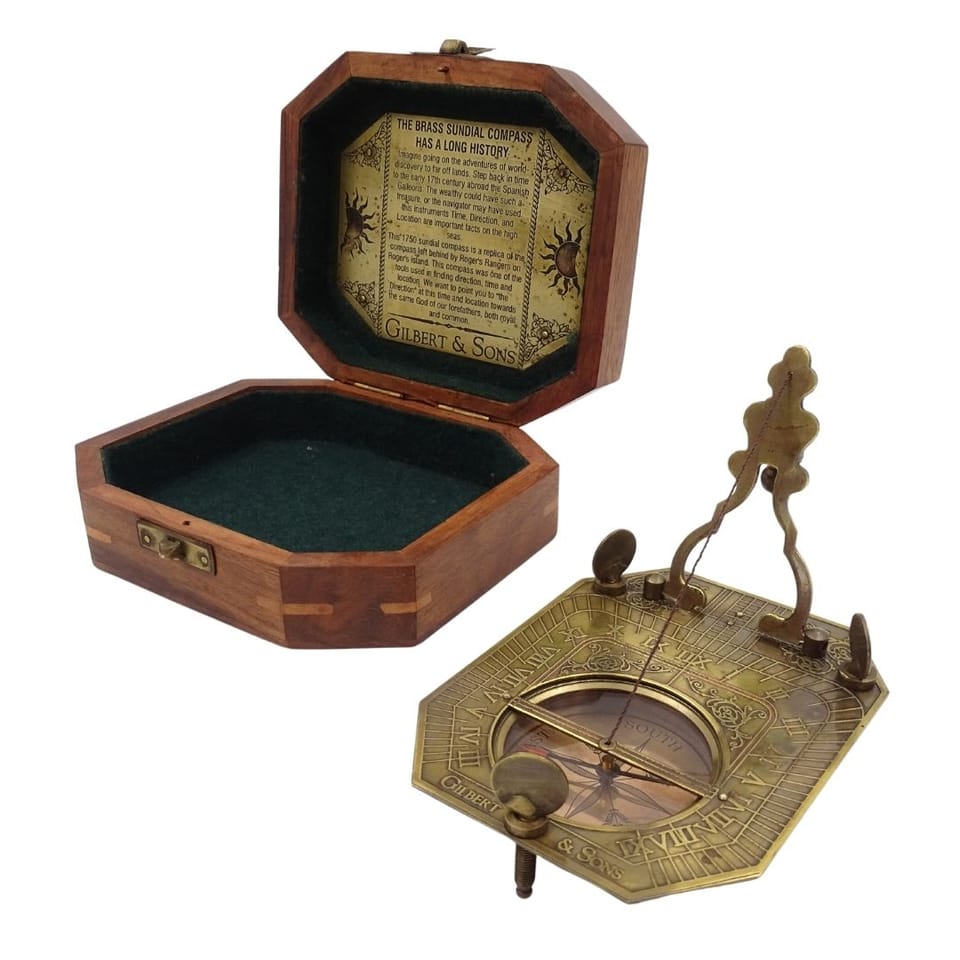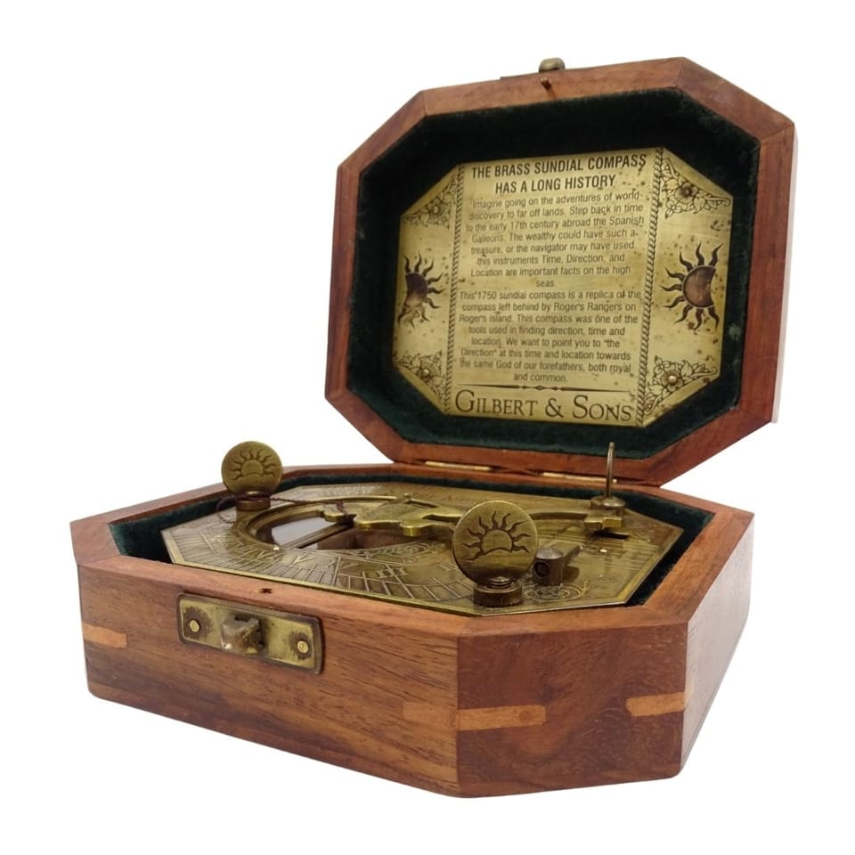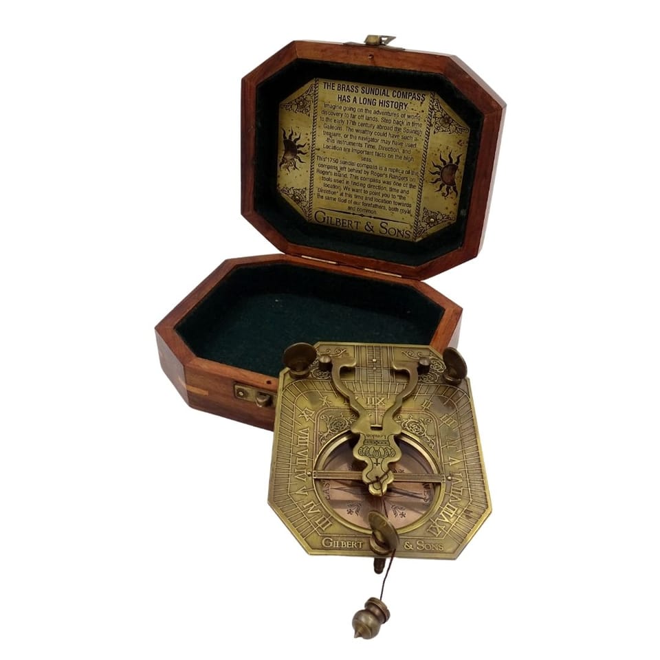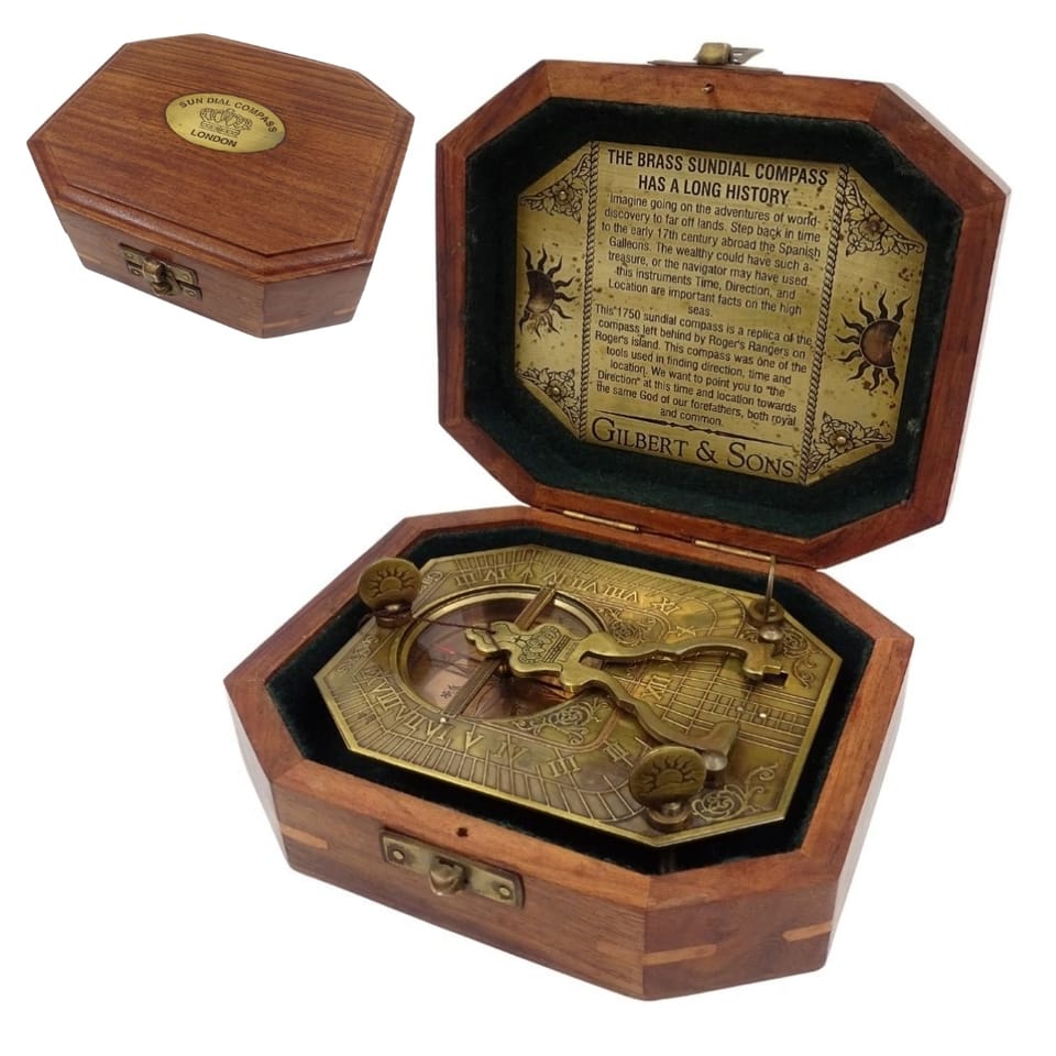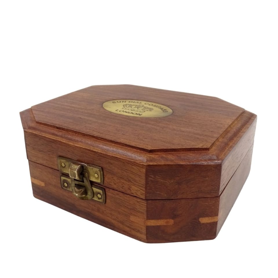 Zegar Słoneczny z Kompasem w Pudełku Drewnianym – Retro Prezent dla Podróżnika – SUN-0106