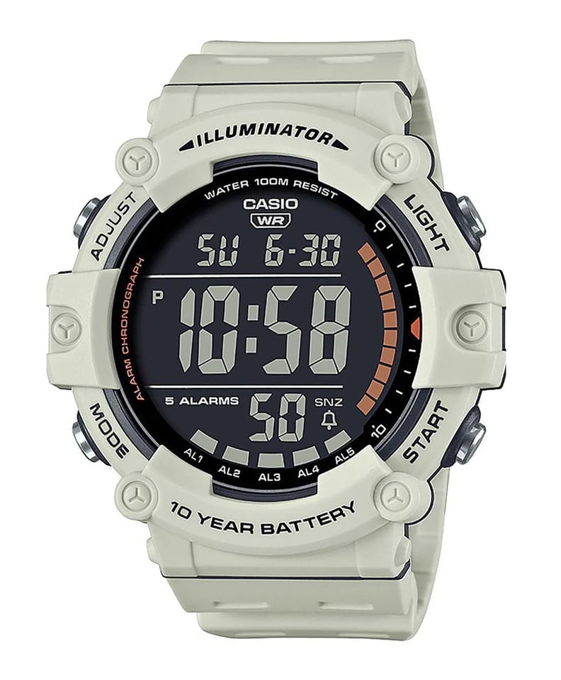 - Tarcza: Kwarcowa. Automatyczny kalendarz: rozbudowany datownik, który automatycznie dopasowuje datę w przypadku krótszych miesięcy; Timer: możliwość odliczania od zaprogramowanego czasu do zera; Zegar 12/24: możliwość wyświetlania godziny w trybach 12 i 24 godzinnych; Stoper: 1/100 mierzy czas do jednej setnej sekundy; Dual-Time: możliwość ustawienia drugiego niezależnego czasu; Alarm: zegarek może sygnałem dźwiękowym informować 5 razy w ciągu doby, w tym tryb drzemki oraz opcja sygnalizacji o pełnych godzinach; Iluminator: możliwość podświetlenia tarczy diodą LED, wytrzymałość baterii: 10 lat