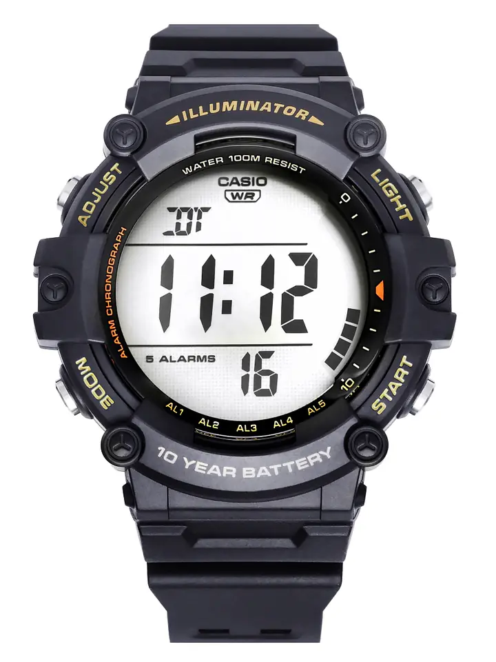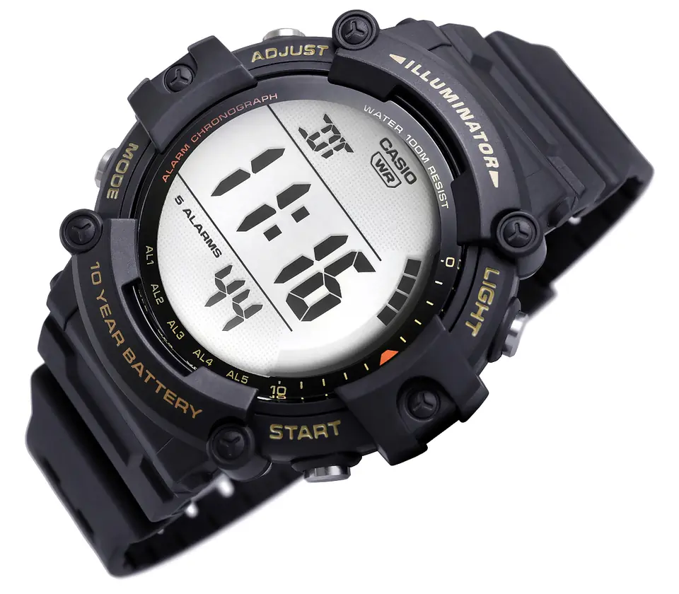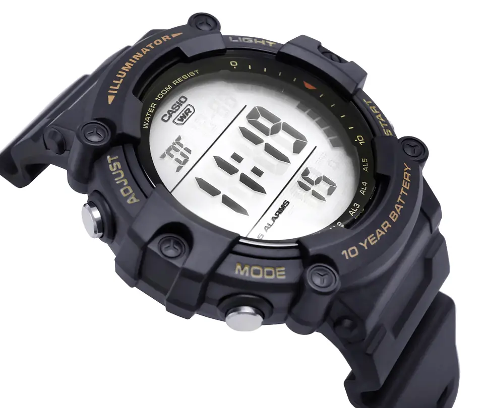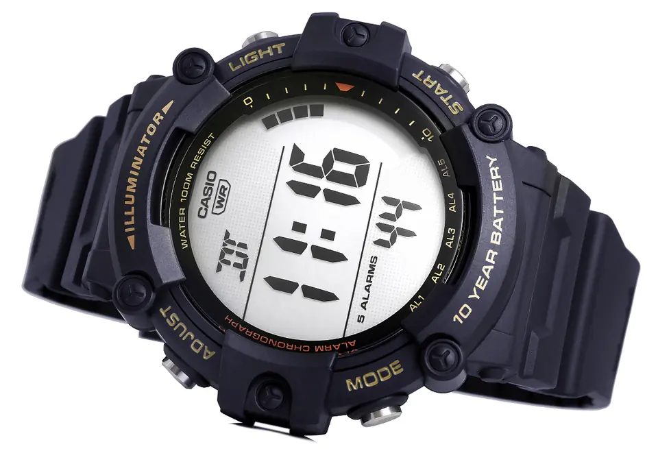 - Tarcza: Kwarcowa. Automatyczny kalendarz: rozbudowany datownik, który automatycznie dopasowuje datę w przypadku krótszych miesięcy; timer: możliwość odliczania od zaprogramowanego czasu do zera; zegar 12/24: możliwość wyświetlania godziny w trybach 12 i 24 godzinnych; stoper: 1/100 mierzy czas do jednej setnej sekundy; Dual-Time: możliwość ustawienia drugiego niezależnego czasu; Alarm: zegarek może sygnałem dźwiękowym informować 5 razy w ciągu doby, w tym tryb drzemki oraz opcja sygnalizacji o pełnych godzinach