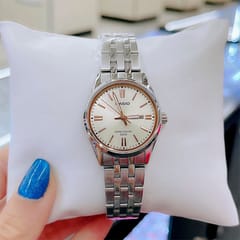 Zegarek Casio Damski LTP-1335D-9A to prawdziwe połączenie elegancji, precyzji i ponadczasowego designu, który zachwyci każdą kobietę poszukującą zarówno stylowego, jak i funkcjonalnego dodatku. Ten czasomierz to coś więcej niż narzędzie do odmierzania godzin – to subtelny wyraz kobiecości i wyrafinowanego gustu. Jego smukła, stalowa koperta o srebrnym odcieniu emanuje delikatnym blaskiem, idealnie komponując się z każdym strojem, czy to casualowym, czy wieczorowym. Niewielka, okrągła tarcza z minimalistycznymi indeksami i wskazówkami dodaje mu lekkości, a jednocześnie podkreśla jego uniwersalny charakter.
