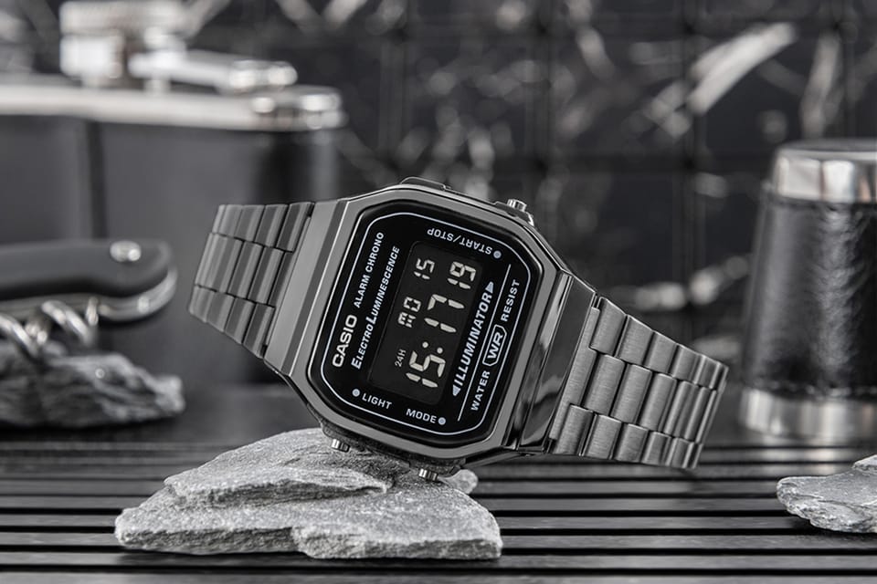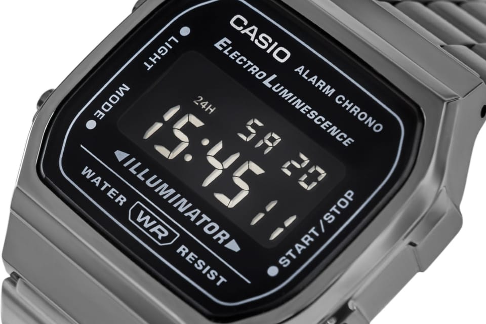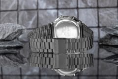 Cyfrowy zegarek dla osób, które cenią ponadczasowy styl i funkcjonalność w codziennym wydaniu. Jego kompaktowa, lekko geometryczna koperta w połączeniu z klasyczną metalową bransoletą nawiązuje do estetyki retro, nadając całości charakteru, który pasuje zarówno do codziennych, jak i bardziej uporządkowanych stylizacji. Model z linii Casio Vintage wyróżnia się czytelnym, cyfrowym wyświetlaczem i smukłą formą, dzięki czemu świetnie prezentuje się na nadgarstku i pozostaje wygodny w noszeniu.