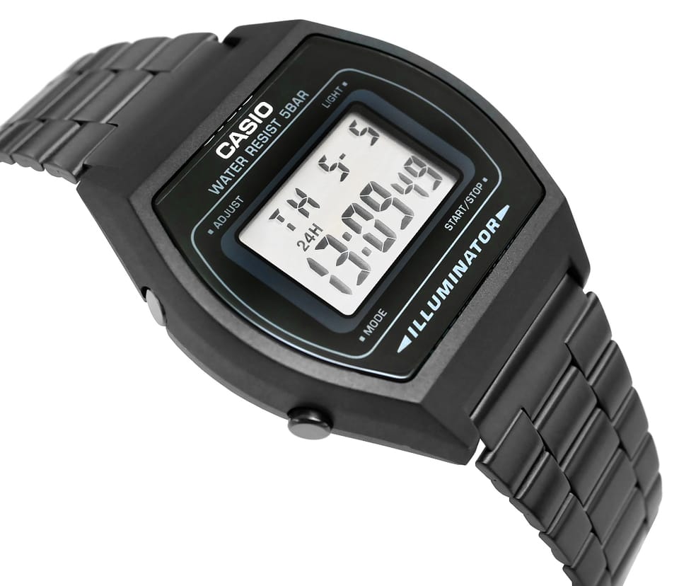 Zegarek CASIO Vintage B640WB-1ADF + BOXZegarek CASIO B640W to doskonały przykład ikony retro w nowoczesnym wydaniu. Charakteryzuje się klasycznym, eleganckim wyglądem, który przyciąga wzrok swoją prostą, a zarazem funkcjonalną konstrukcją. Jego cyfrowy wyświetlacz z funkcją podświetlenia LED umożliwia łatwy odczyt godziny nawet w słabym oświetleniu, a wytrzymała obudowa Resin oferuje lekkość ale i odporność na codzienne trudności. Funkcją flash alert zapewnia, iż zegarek miga wraz z sygnałem dźwiękowym dla alarmów i sygnału godzinowego. Dodatkowo, model oferuje funkcje takie jak stoper, timer, alarm oraz kalendarz, które czynią go niezwykle praktycznym narzędziem w codziennym życiu. Wybierz CASIO B640W i ciesz się idealnym połączeniem klasyki z nowoczesnością!
