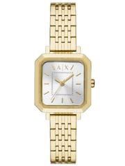 Armani Exchange to pełnoprawna marka stworzona przez znanego na całym świecie projektanta Giorgio Armaniego, zachowując tą samą jakość i prestiż,co jej bliźniacza marka Emporio Armani czy Armani Jeans. Również zasila sektor dóbr luksusowych. W tym przypadku jednak wśród odbiorców są głównie osoby młode.Zegarek Armani Exchange Leila AX5725 swój modny design zawdzięcza rewelacyjnemu połączeniu koperty w kolorze złotym, z bransoletą i srebrną tarczą. Ten damski model znakomicie sprawdzi się jako modny dodatek na nadgarstku każdej nowoczesnej kobiety. Jak wszystkie zegarki AX w niesamowity sposób łączy w sobie markowy design, najmodniejsze trendy oraz ponadczasową, wyrafinowaną elegancję.