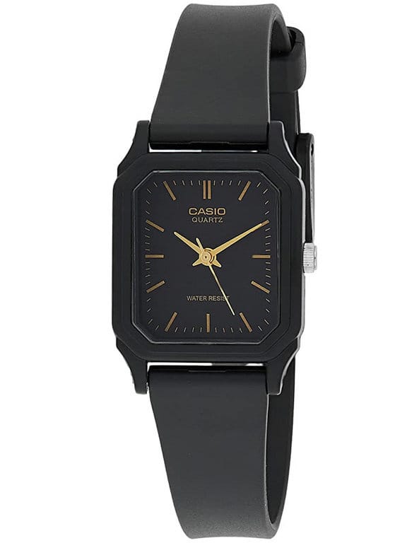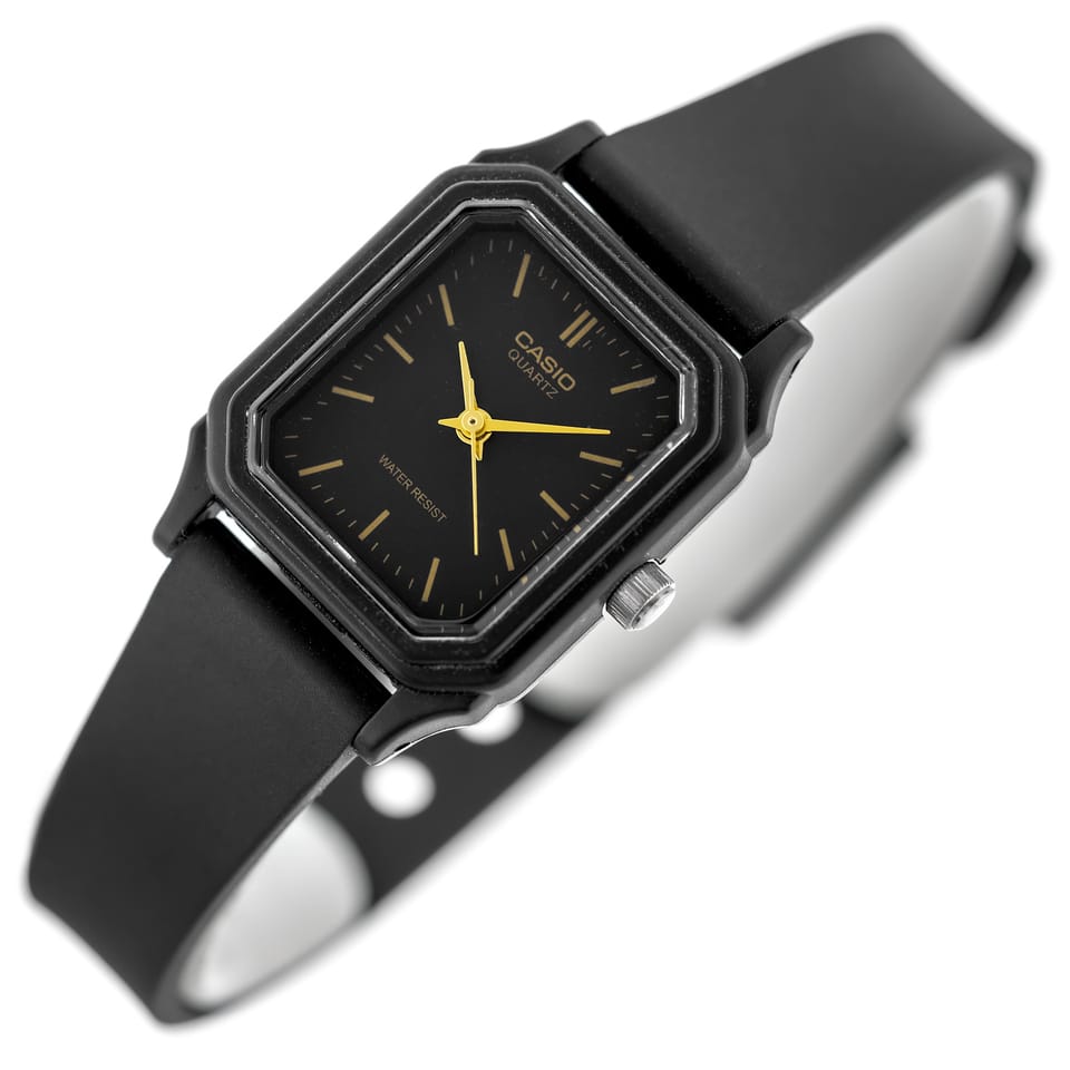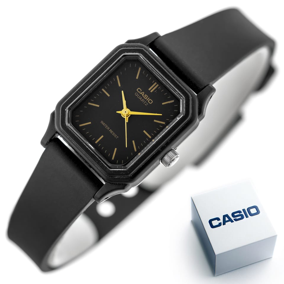 Zegarek Casio CASIO LQ-142-1E to połączenie klasyki z nowoczesnym stylem, które idealnie wpisuje się w eleganckie i codzienne potrzeby współczesnej kobiety. Jego subtelna, czarna koperta oraz delikatny pasek z wysokiej jakości tworzywa sztucznego tworzą niepowtarzalną całość, która doda szyku każdej stylizacji. Prosty, ale elegancki cyferblat w kolorze czarnym z delikatnymi ale wyraźnymi cyframi doskonale harmonizuje z całością, zapewniając nie tylko estetyczny wygląd, ale i wyjątkową czytelność. Zegarek został zaprojektowany z myślą o codziennym użytkowaniu – jest lekki, komfortowy i łatwy do dopasowania do nadgarstka dzięki regulowanemu paskowi.
