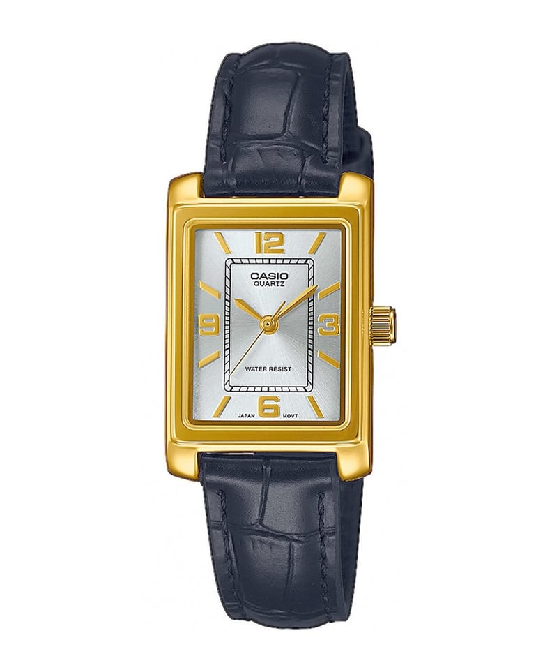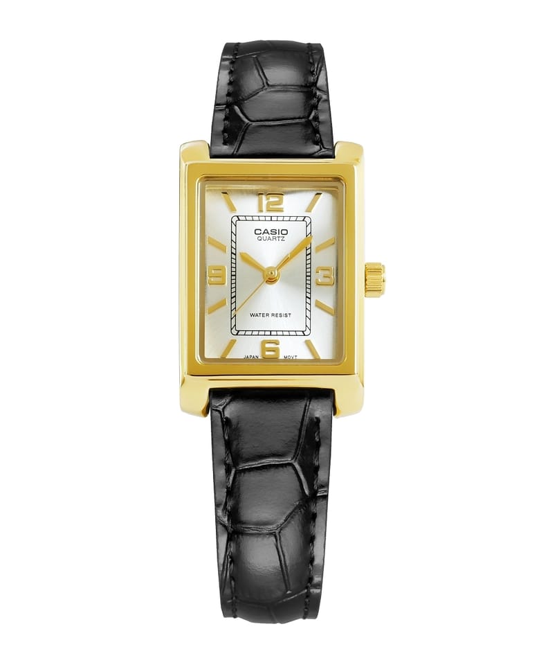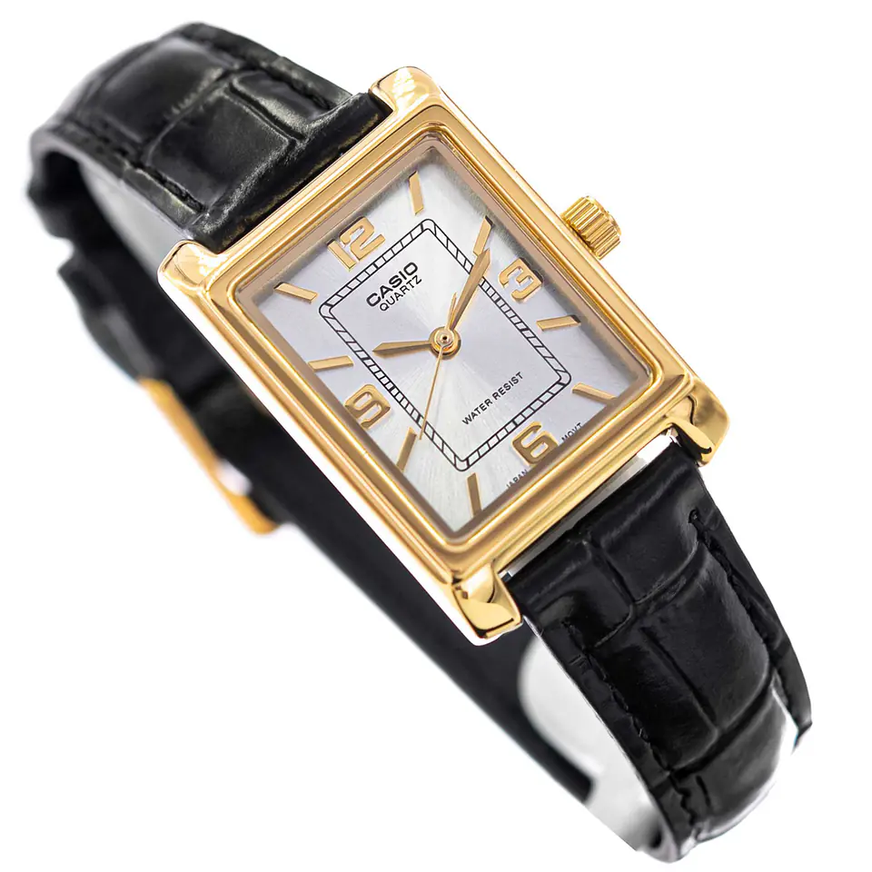 Zegarek CASIO LTP-1234PGL 7A2EF wyróżnia się elegancją prostokątnej koperty i minimalistycznym designem. Jego niezawodność oparta jest na precyzyjnym japońskim mechanizmie kwarcowym, cenionym w świecie zegarmistrzowskim za doskonałą dokładność.