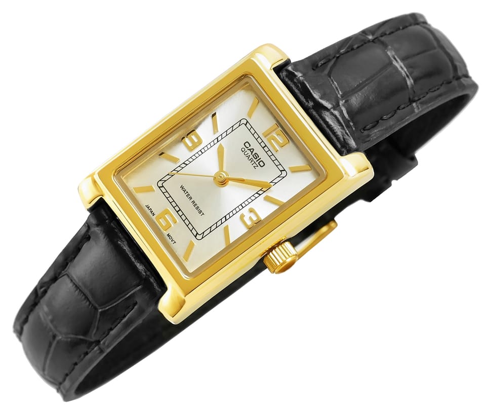 Złota koperta z eleganckim połyskiem doskonale kontrastuje z czarnym paskiem wykonanym ze skóry naturalnej, nadając zegarkowi wyjątkowy charakter. Ten model doskonale sprawdzi się zarówno jako dodatek do codziennego stroju, jak i jako subtelny akcent w bardziej formalnych stylizacjach. Zegarek CASIO LTP-1234PGL 7A2EF to połączenie tradycji, precyzji i stylu, które podkreśli wyjątkowy gust każdej noszącej go kobiety.