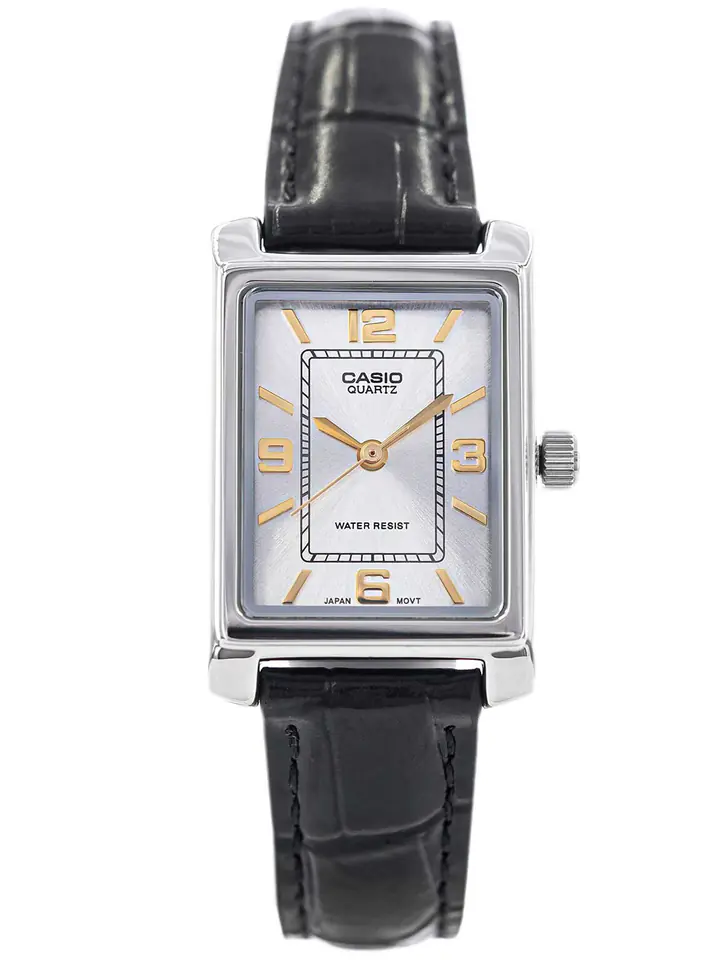 Srebrna koperta z eleganckim połyskiem doskonale kontrastuje z czarnym paskiem wykonanym ze skóry naturalnej, nadając zegarkowi wyjątkowy charakter. Ten model doskonale sprawdzi się zarówno jako dodatek do codziennego stroju, jak i jako subtelny akcent w bardziej formalnych stylizacjach. Zegarek CASIO LTP-1234PL-7A2EF to połączenie tradycji, precyzji i stylu, które podkreśli wyjątkowy gust każdej noszącej go kobiety.