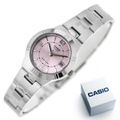 CASIO LTP-1241D-4A to elegancki zegarek damski, który łączy w sobie klasyczny design z nowoczesnymi rozwiązaniami technologicznymi. Zegarek charakteryzuje się stalową kopertą o średnicy 25 mm, która nadaje mu subtelny, ale jednocześnie wyrazisty wygląd. Koperta została wykonana z wysokiej jakości stali nierdzewnej, co zapewnia trwałość oraz odporność na uszkodzenia. Zegarek posiada różową tarczę, na której umieszczono srebrzyste indeksy oraz wskazówki, co sprawia, że odczyt godziny jest wygodny i przejrzysty. Na tarczy znajduje się także datownik, który wyświetla aktualny dzień miesiąca. Dzięki zastosowaniu szkiełka mineralnego, tarcza jest odporna na zarysowania, co zapewnia długotrwałą estetykę zegarka. Bransoleta, również wykonana ze stali nierdzewnej, ma elegancki, srebrny kolor, który doskonale komponuje się z resztą designu. Jest wygodna i łatwa do dopasowania do nadgarstka, co sprawia, że zegarek jest komfortowy w noszeniu na co dzień. CASIO LTP-1241D-4A to zegarek, który łączy funkcjonalność z estetyką, oferując precyzyjny mechanizm kwarcowy oraz elegancki wygląd. To doskonały wybór dla osób poszukujących zegarka, który będzie pasował do zarówno codziennych, jak i bardziej formalnych stylizacji.