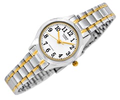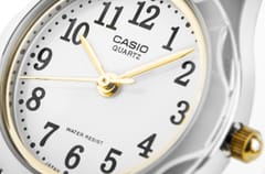 Ten model zegarka CASIO to idealny wybór dla kobiet o drobnej, delikatnej dłoni, subtelnie podkreślający jej smukłość i elegancję. Dzięki kompaktowej kopercie i lekkiej konstrukcji, nosi się go niemal jak biżuterię – jest wygodny, stylowy i niezwykle ponadczasowy. To doskonały prezent na Komunię Świętą – jego klasyczny design sprawia, że będzie pasował zarówno do młodej damy, jak i kobiety, która ceni sobie subtelną elegancję. Minimalistyczna tarcza w klasycznym białym kolorze z czytelnymi czarnymi cyframi zapewnia maksymalną przejrzystość, a srebrno-złote wykończenie dodaje mu luksusowego charakteru.