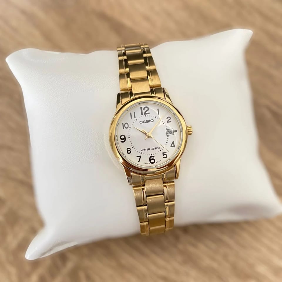 Zegarek Casio LTP-V002G-7B to doskonały wybór dla osób, które cenią sobie klasyczny design i niezawodność. Jego elegancka, złota koperta wykonana ze stali szlachetnej świetnie komponuje się z białą tarczą, tworząc ponadczasowy wygląd. Dzięki precyzyjnemu mechanizmowi kwarcowemu, zegarek zapewnia dokładność i długowieczność, będąc doskonałym narzędziem do codziennego użytkowania.