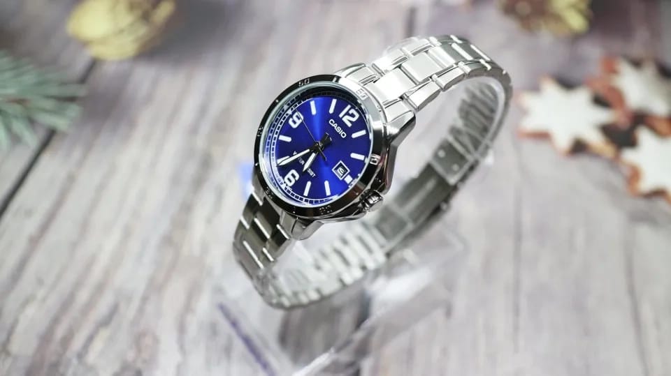 Casio LTP-V004D-2B to zegarek, który łączy w sobie klasykę z nowoczesnością, prezentując się równie efektownie w eleganckich, jak i codziennych stylizacjach. Niech delikatność tego zegarka podkreśla Twoją wyjątkową osobowość, dodając jednocześnie nuty szyku i finezji.