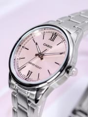 Zegarek Damski Casio LTP-V005D-4B2 to harmonijne połączenie minimalistycznego designu i codziennej funkcjonalności, które zachwyci każdą miłośniczkę prostoty z klasą. Ten czasomierz to prawdziwy przykład tego, jak niewiele trzeba, by stworzyć coś niezwykle stylowego. Jego różowa tarcza kontrastuje z subtelnymi, srebrnymi wskazówkami i indeksami, tworząc efektowną, a zarazem stonowaną całość. Koperta ze stali szlachetnej o delikatnym połysku dodaje mu odrobiny elegancji, a jednocześnie sprawia, że zegarek doskonale komponuje się z każdą stylizacją – od casualowych zestawów po bardziej formalne kreacje.