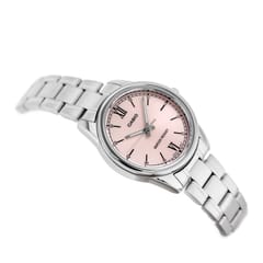 Zegarek Damski Casio LTP-V005D-4B2 to harmonijne połączenie minimalistycznego designu i codziennej funkcjonalności, które zachwyci każdą miłośniczkę prostoty z klasą. Ten czasomierz to prawdziwy przykład tego, jak niewiele trzeba, by stworzyć coś niezwykle stylowego. Jego różowa tarcza kontrastuje z subtelnymi, srebrnymi wskazówkami i indeksami, tworząc efektowną, a zarazem stonowaną całość. Koperta ze stali szlachetnej o delikatnym połysku dodaje mu odrobiny elegancji, a jednocześnie sprawia, że zegarek doskonale komponuje się z każdą stylizacją – od casualowych zestawów po bardziej formalne kreacje.