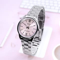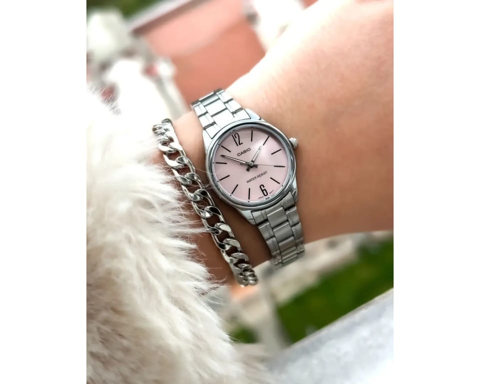 Zegarek Damski Casio LTP-V005D-4BUDF to harmonijne połączenie minimalistycznego designu i codziennej funkcjonalności, które zachwyci każdą miłośniczkę prostoty z klasą. Ten czasomierz to prawdziwy przykład tego, jak niewiele trzeba, by stworzyć coś niezwykle stylowego. Jego różowa tarcza kontrastuje z subtelnymi, srebrnymi wskazówkami i indeksami, tworząc efektowną, a zarazem stonowaną całość. Koperta ze stali szlachetnej o delikatnym połysku dodaje mu odrobiny elegancji, a jednocześnie sprawia, że zegarek doskonale komponuje się z każdą stylizacją – od casualowych zestawów po bardziej formalne kreacje.