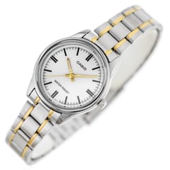 Zegarek Damski Casio LTP-V005SG-7A to harmonijne połączenie minimalistycznego designu i codziennej funkcjonalności, które zachwyci każdą miłośniczkę prostoty z klasą. Ten czasomierz to prawdziwy przykład tego, jak niewiele trzeba, by stworzyć coś niezwykle stylowego. Jego srebrna tarcza kontrastuje z subtelnymi, złotymi wskazówkami i indeksami, tworząc efektowną, a zarazem stonowaną całość. Koperta ze stali szlachetnej o delikatnym połysku dodaje mu odrobiny elegancji, a jednocześnie sprawia, że zegarek doskonale komponuje się z każdą stylizacją – od casualowych zestawów po bardziej formalne kreacje.
