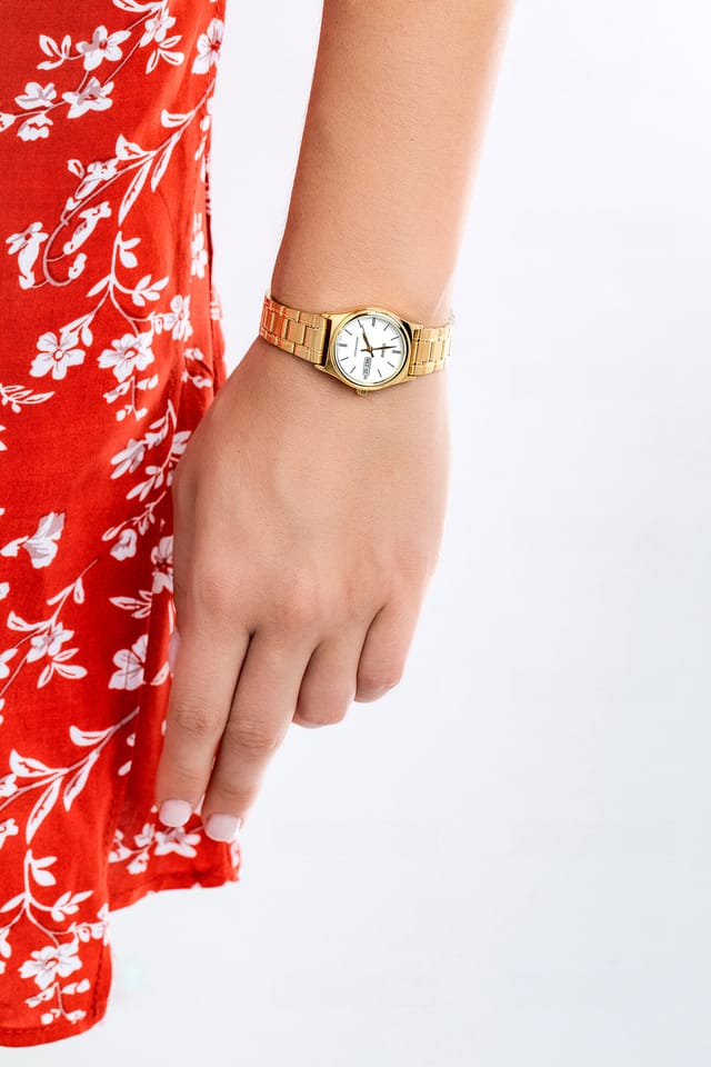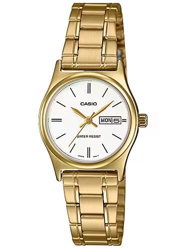 Zegarek Casio LTP-V006G-7B to doskonały wybór dla osób, które cenią sobie klasyczny design i niezawodność. Jego elegancka, złota koperta wykonana ze stali szlachetnej świetnie komponuje się z subtelną tarczą, tworząc ponadczasowy wygląd. Dzięki precyzyjnemu mechanizmowi kwarcowemu, zegarek zapewnia dokładność i długowieczność, będąc doskonałym narzędziem do codziennego użytkowania.