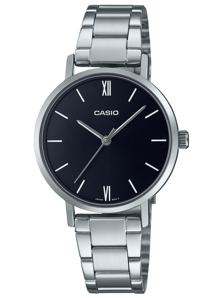 Srebrna koperta z eleganckim połyskiem doskonale komponuję się ze srebrną bransoletą wykonaną ze stali szlachetnej, nadając zegarkowi wyjątkowy charakter. Ten model doskonale sprawdzi się zarówno jako dodatek do codziennego stroju, jak i jako subtelny akcent w bardziej formalnych stylizacjach. Zegarek CASIO LTP-VT02D-1A to połączenie tradycji, precyzji i stylu, które podkreśli wyjątkowy gust każdej noszącej go kobiety.